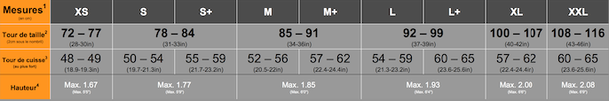Une fois ces 3 mesures prises, vous pourrez voir à quelle taille de Shortystrap vous correspondez dans le tableau ci-dessous.